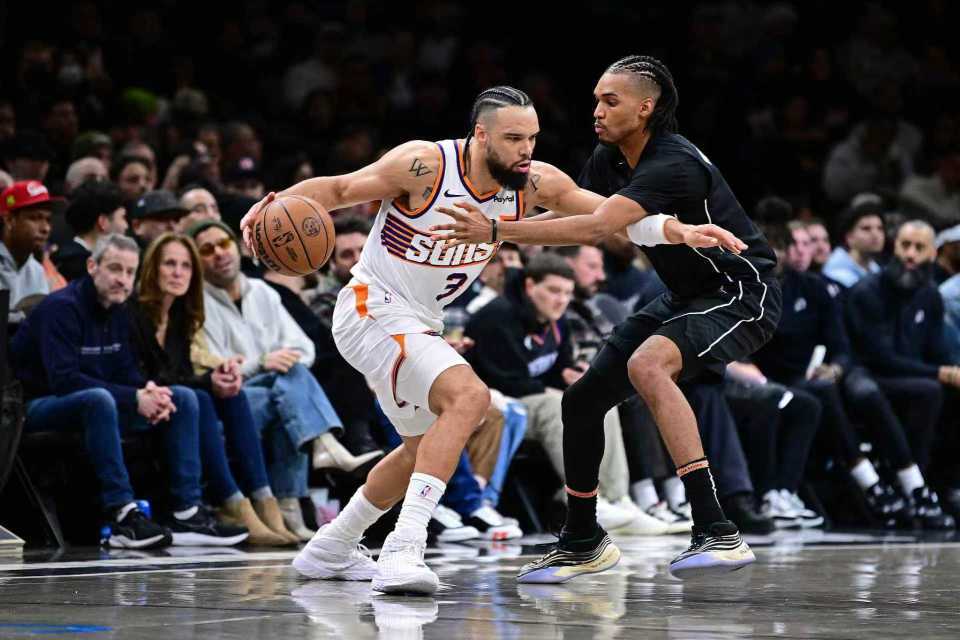 次节比赛,太阳率先一波8-3攻势扩大19分优势,篮网连追6分,太阳维持57-42领先。太阳连得5分扩大20分领先优势,篮网内外开一波9-2攻势追分,太阳很快重新扩大70-53领先优势。篮网回敬一波15-2攻势强势反扑追分,太阳单节32-42被追回10分,上半场结束太阳被追到仅72-68领先篮网。前两节比赛,太阳三分命中数10-11落后,波特13分、威廉姆斯12分与特拉奥雷10分,狄龙4记三分16分、布克12分与吉莱斯皮12分。